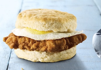 2 eggs; an all-natural, locally sourced fried chicken breast; a scratch-made, fresh-baked biscuit served hot with butter; and a side of your choice.