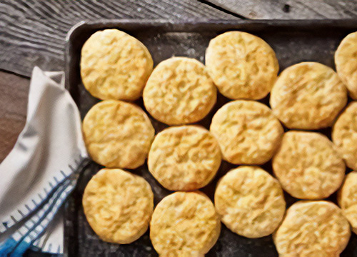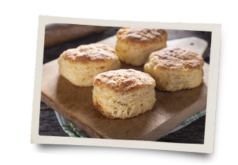 The flour in our biscuits is our very own proprietary blend using locally sourced, soft red winter wheat. It’s milled slowly to preserve more flavor by a 5th-generation, family-owned mill in Newton, North Carolina.